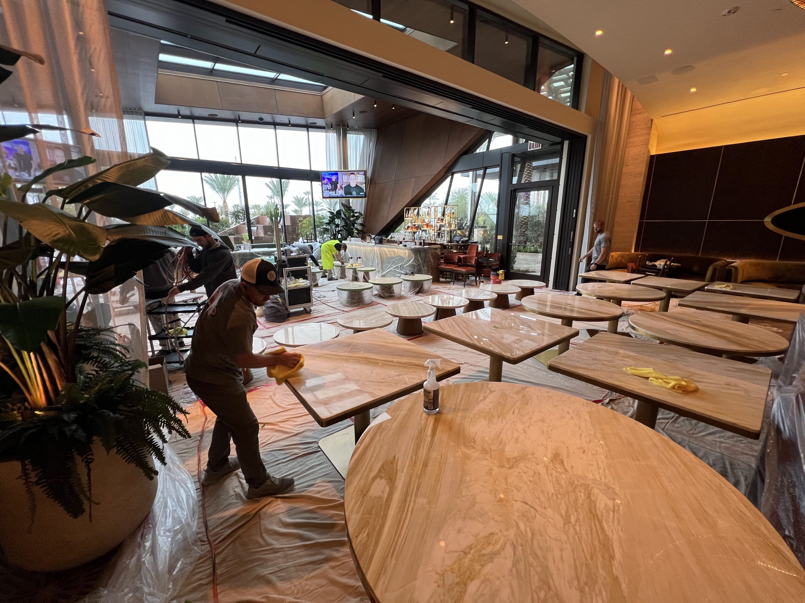Don’t let etches and stains ruin the look of your stone countertops. Contact Pure Light Cleaning today to schedule your More™ AntiEtch™ service. As one of the only two certified applicators in San Diego, we’re dedicated to providing you with the best service possible. Call (619) 631-4133 or book online to achieve a luxurious finish for your stone countertops with long-lasting protection against etching and staining.